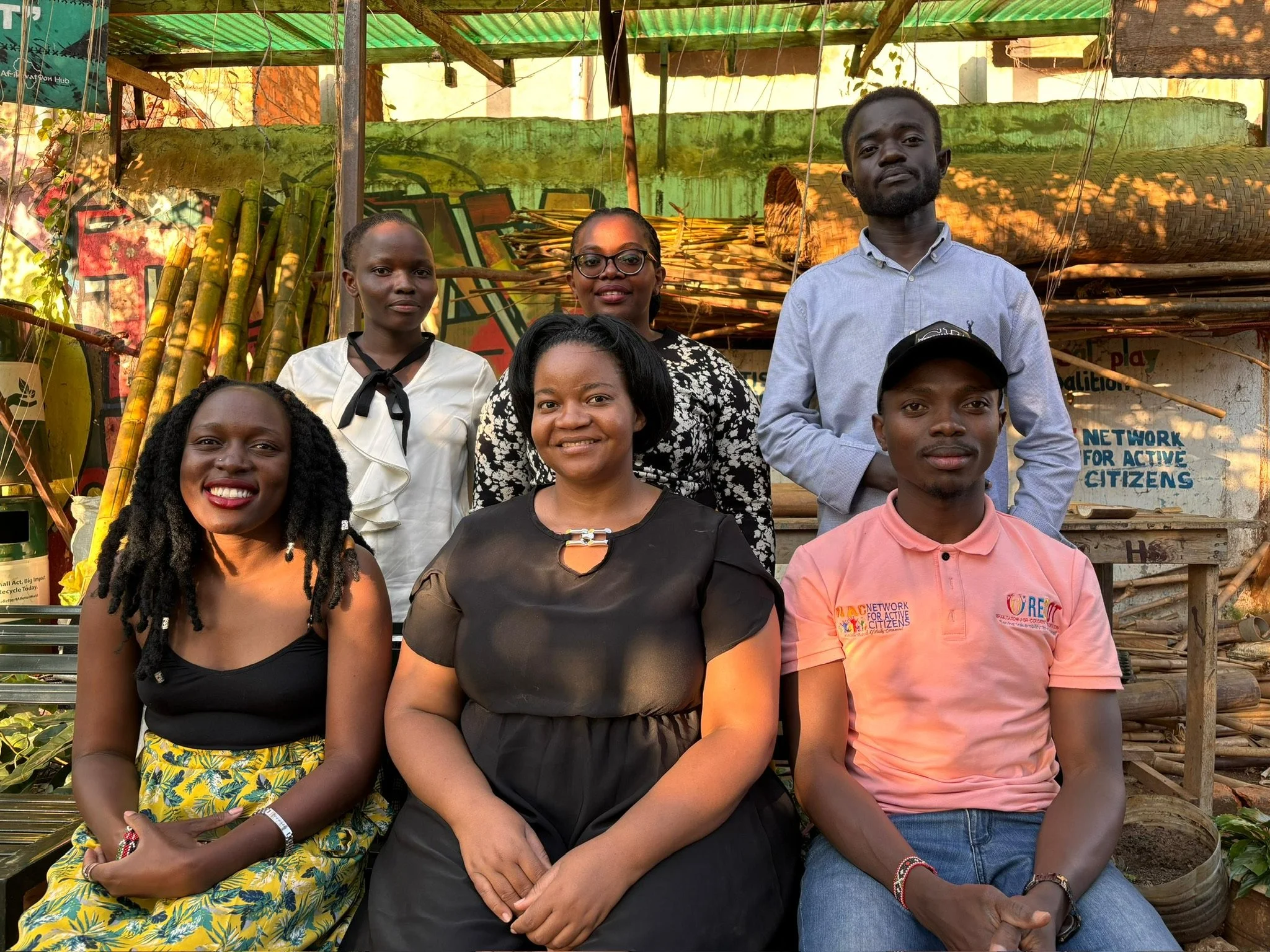 Pictured from top right to bottom left: Brian Otoke (IT Officer), Maria Diana Mukanzanira (Program Officer), Pispa Acen (Volunteer), Ismail Bogere (Yumbe Coordinator), Ronah Ahumuza (Executive Director), Martha Angoku (Accountant).